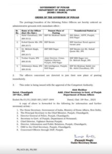 पंजाब में पांच IPS अधिकारियों की ट्रांसफर, देखें लिस्ट