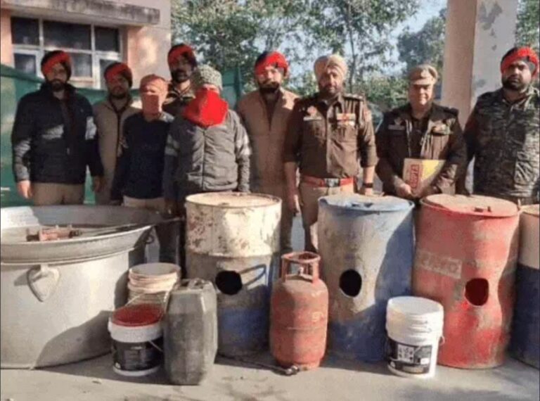 जालंधर रूरल पुलिस ने गोराया के गांव रुड़का में रेड करके अवैध शराब की फैक्ट्री से करीब 10 हजार लीटर लाहन और 100 लीटर तैयार शराब जब्त की। पुलिस ने दो आरोपियों को भी गिरफ्तार कर लिया, जबकि एक मुख्य आरोपी मौके से फरार होने में कामयाब रहा। थाना प्रभारी सिकंदर सिंह के नेतृत्व में पुलिस टीम ने गांव रुड़का में अचानक छापेमारी की। पुलिस को सूचना मिली थी कि यहां बड़े स्तर पर जहरीली शराब तैयार कर सप्लाई की जा रही है। मौके पर पहुंचने पर पुलिस ने देखा कि एक बड़े पतीले में भट्टी चलाकर शराब निकाली जा रही थी। तलाशी के दौरान पुलिस को जमीन में दबे हुए 4 बड़े ड्रम मिले, जिन्हें सीमेंट से ढका गया था ताकि किसी को शक न हो। इन ड्रमों और भट्टी से कुल 10,000 लीटर लाहन बरामद हुई। पुलिस के अनुसार, यह भट्टी इतनी बड़ी थी कि इसमें एक समय में 5 हजार लीटर तक लाहन प्रोसेस की जा सकती थी।