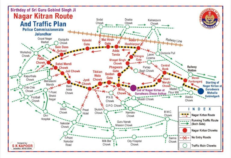 शुक्रवार को बहुत धूमधाम से श्री गुरु गोबिंद सिंह जी के प्रकाश पर्व को लेकर विशाल नगर कीर्तन निकाला जा रहा है जिसके चलते जिस यह आदेश जारी किए गए हैं।